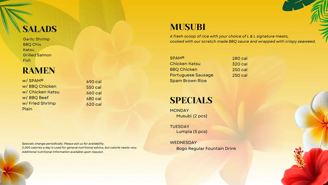 While we finalize our Del Mar menu, preview pur delicious Hawaiian BBQ Menu